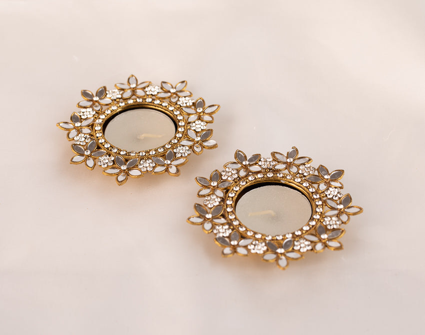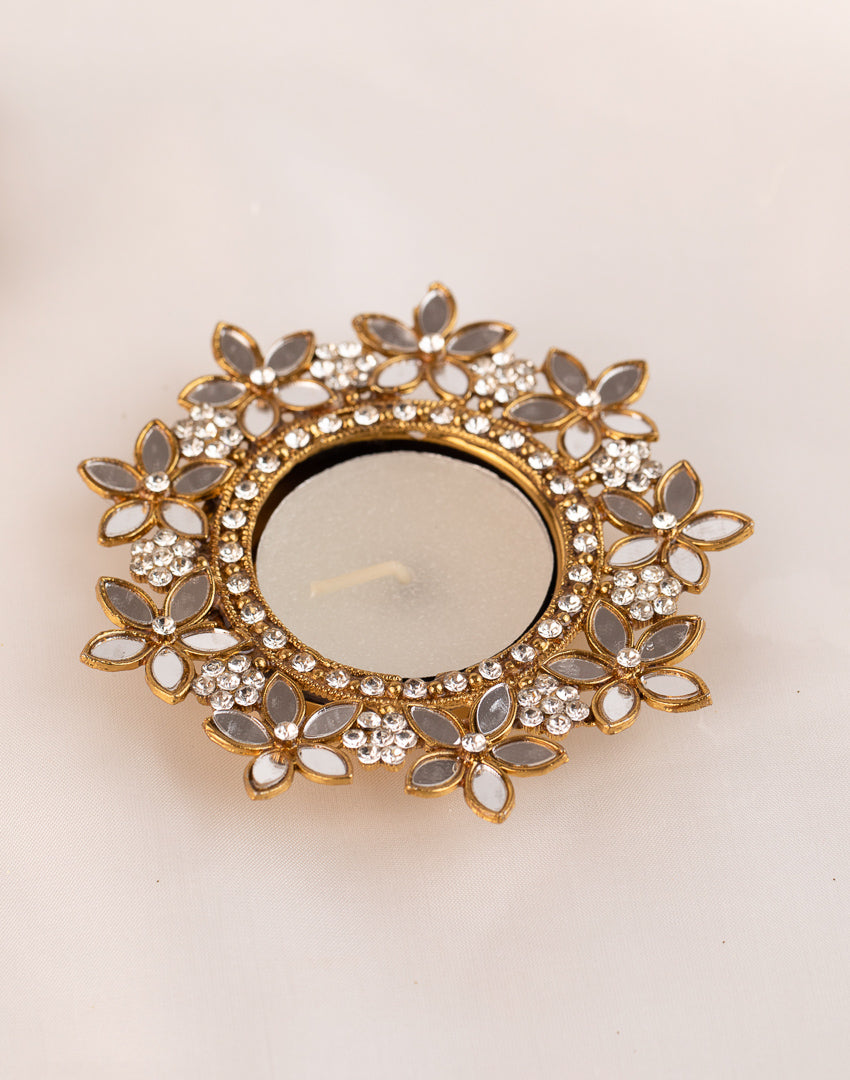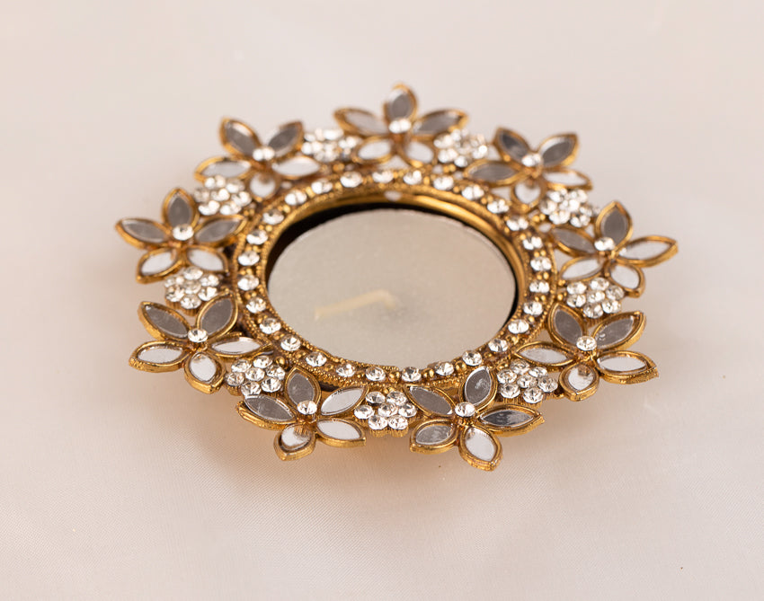 Floral Mirror studded candle holder