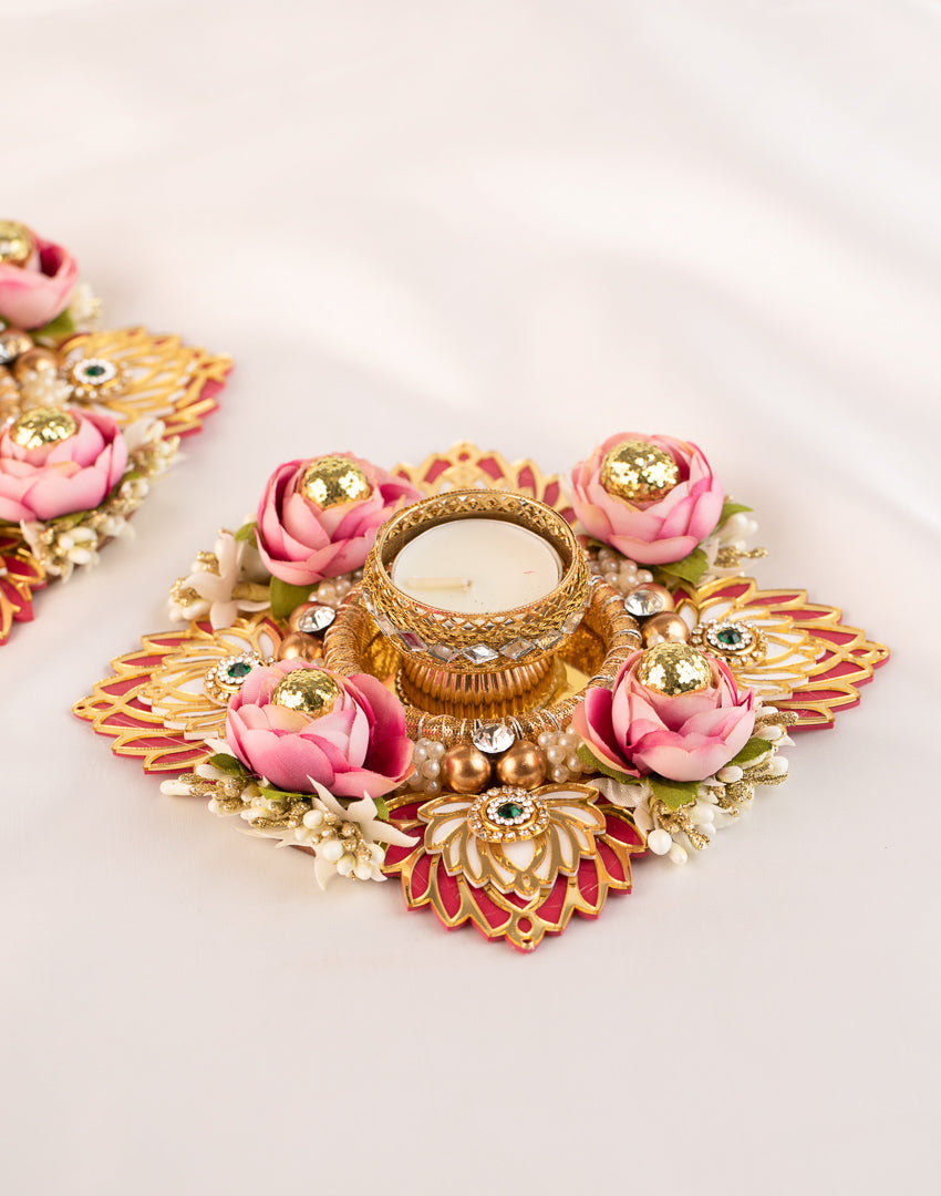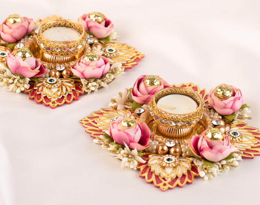 Add a burst of colour to your celebrations with this vibrant tea light candle holder made with an array of pink and white flowers. Its lively design infuses any space with a joyful ambiance, perfect for creating a warm and inviting atmosphere.