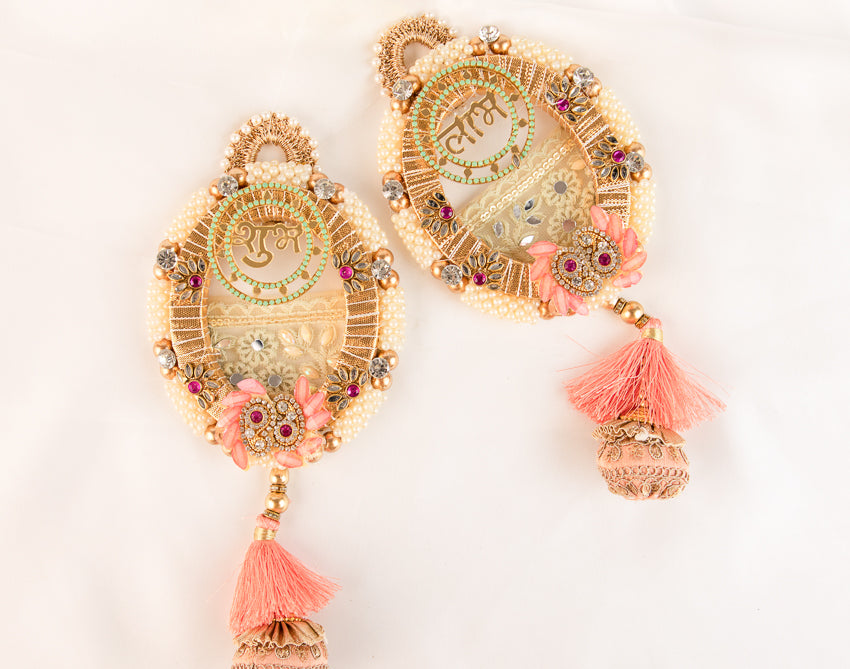 Pastel Peach and Green Subh Labh