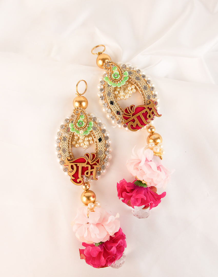 Pink Floral with Moti and Diamond Stones Studded Subh Labh Set